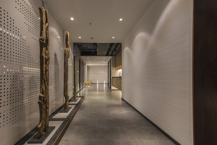 面(miàn)積:500m2,本方案采用創意風格,把現代風格和中式風格元素融爲一體,既體現了辦公空間的時尚現代感,也有中式風的大氣與莊重。