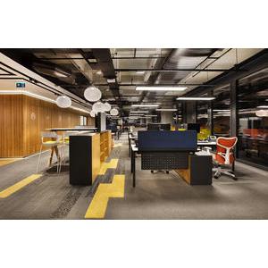 面(miàn)積2200m2,其中辦公區域爲1000m2,本方案運用創意風格,家具采用多種(zhǒng)色彩大膽跳躍性的設計,但能(néng)有效地融入到整個辦公區域中,部分頂面(miàn)造型及各式造型燈具都(dōu)起(qǐ)到了裝飾的效果,讓整個辦公環境看起(qǐ)來有個性的同時,亦體現了其公司的企業文化,以科技創新爲主。