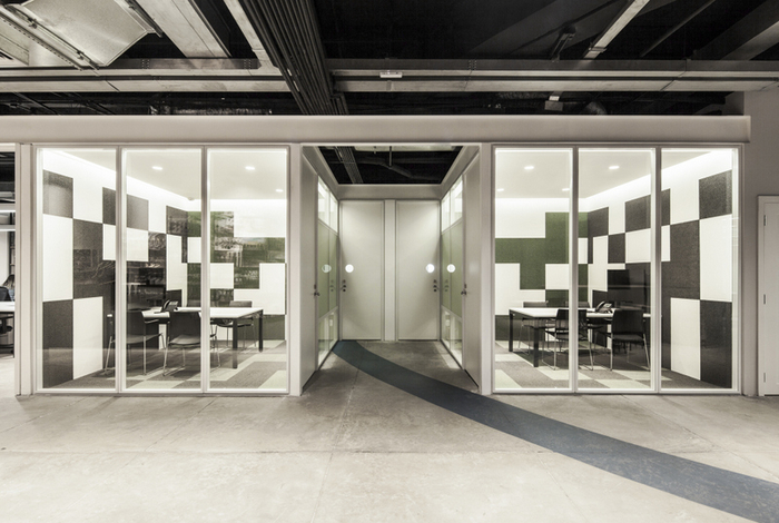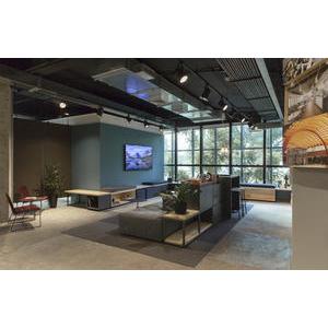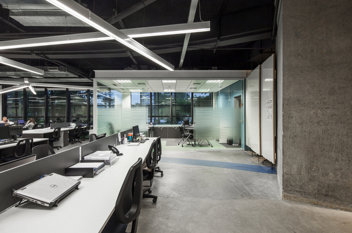 面(miàn)積:500m2,采用工業風裝修風格,其中經(jīng)理室、會議室、财務室用鋁材玻璃隔斷分成(chéng)獨立的區域,其它辦公區域分敞開(kāi)式的辦公區,頂面(miàn)噴黑,用各式燈作爲裝飾效果,地面(miàn)爲仿古磚,牆面(miàn)有的爲原牆體刷膠水、部分牆體輔用色彩以緻于牆面(miàn)不單調。整體工業風格濃烈。